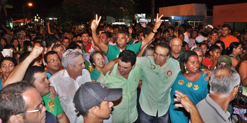 Milhares de pessoas prestigiaram na noite desta quarta-feira (15) a festa politica que o deputado estadual reeleito Tomba Farias (PSB) fez em Santa Cruz, para os candidatos ao Governo Henrique Alves (PMDB) e o vice João Maia (PR). A pé, a comitiva e o povo percorreram em passeata as principais ruas da cidade, encerrando com comício ao lado da Igreja Matriz de Santa Rita de Cássia.